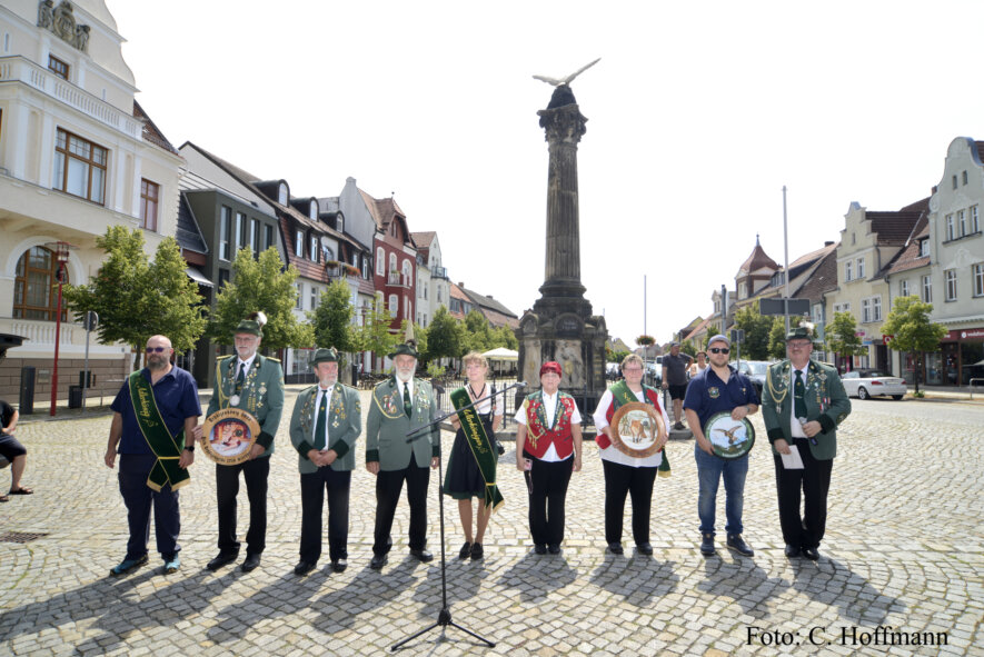 v.l.n.r. König Mike Kegel, 1. Ritter Sven Hamann,  	2. Ritter Siegmar Drews, Adlerkönig Bernd Rogge, 2. Prinzessin Daniela  	Dittrich, 1. Prinzessin Rosa Rogge, Königin Sylvia Müller